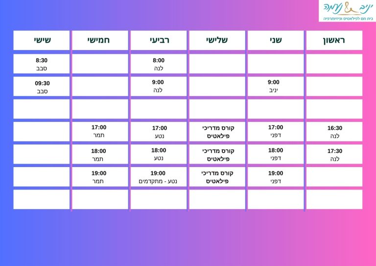 - 3 שיעורים בשבוע – 560 ש"ח לחודש.