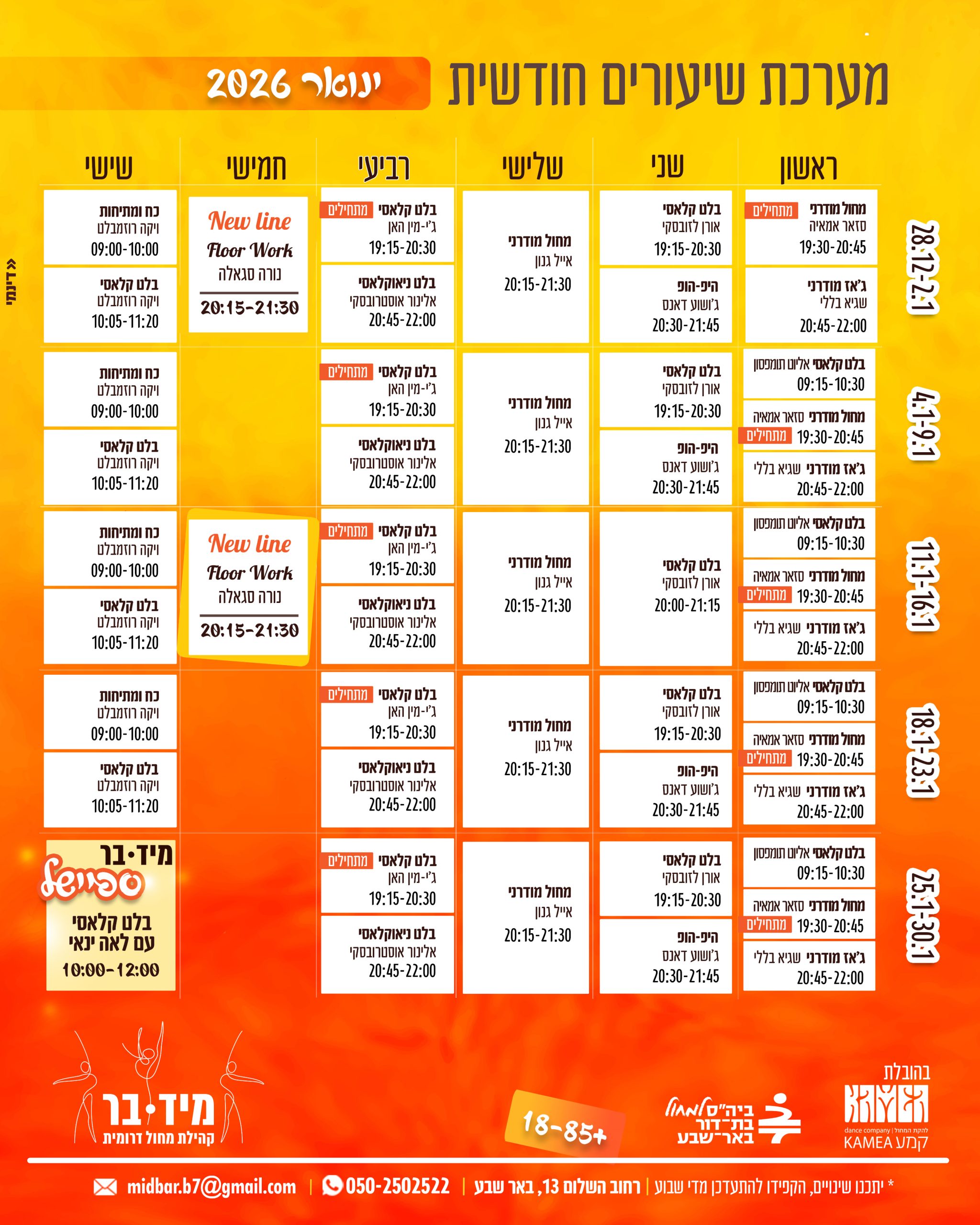 מיד-בר, שיעורי מחול לבוגרים (מעל גיל 18) בבאר שבע – בהובלת להקת המחול קמע!